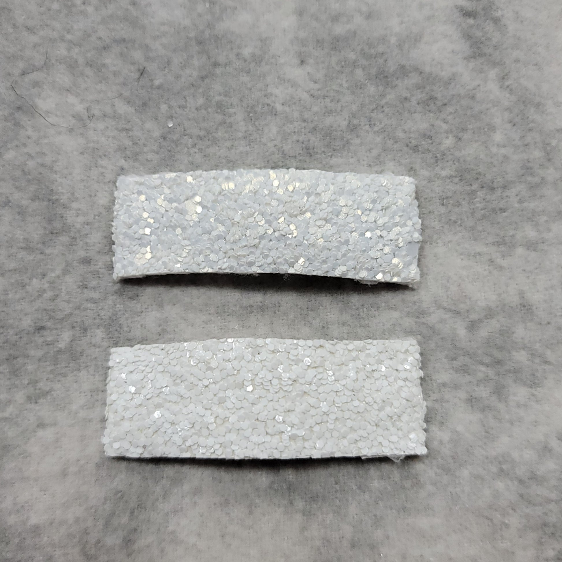 White glitter with soft backing secured on a 2 inch alligator clip.