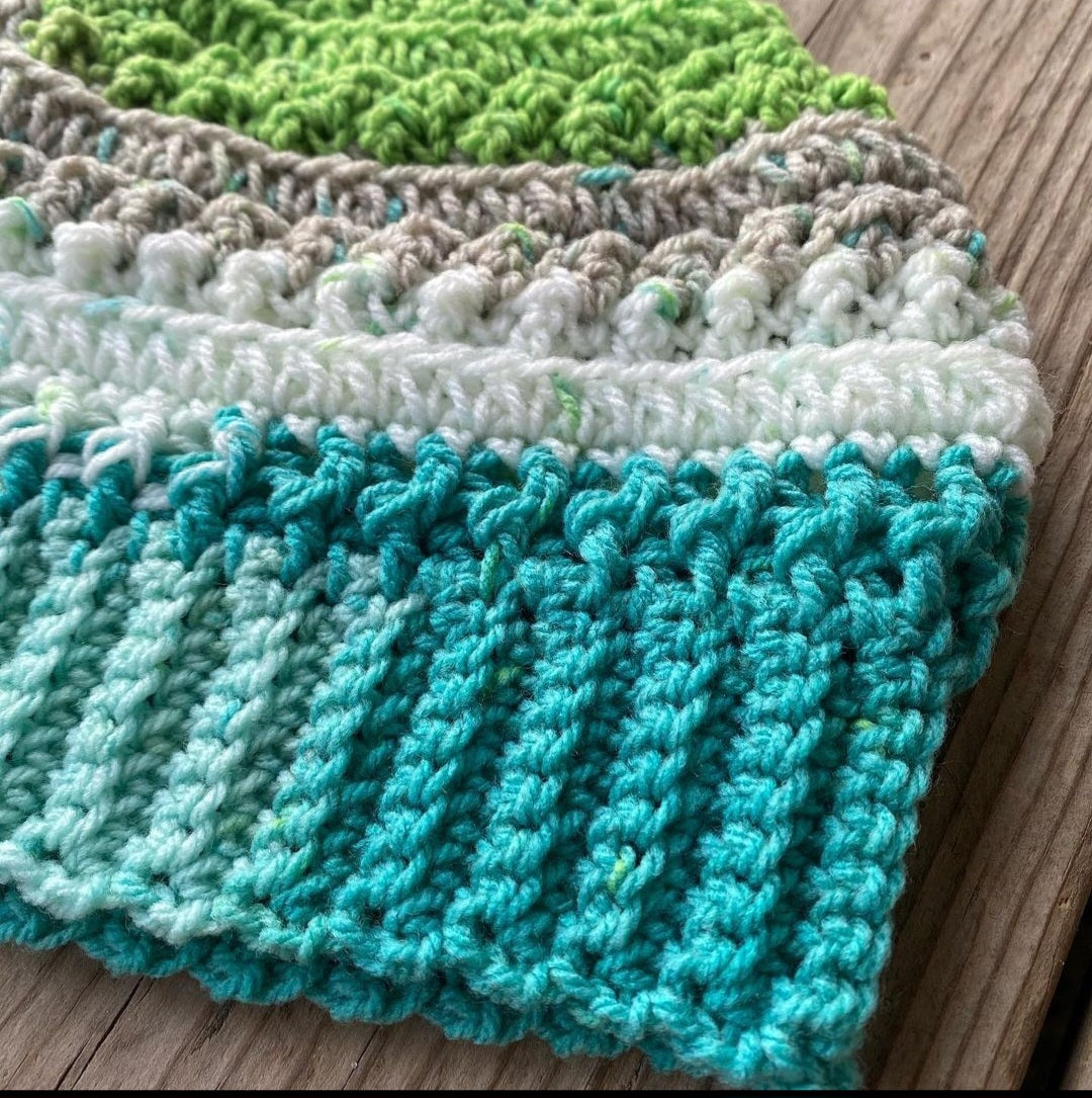 100% acrylic. Machine wash, lay flat to dry.
